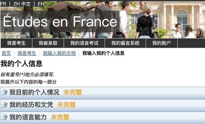 所选院校不使用 « Etudes en France » 系统管理外国学生的申请。