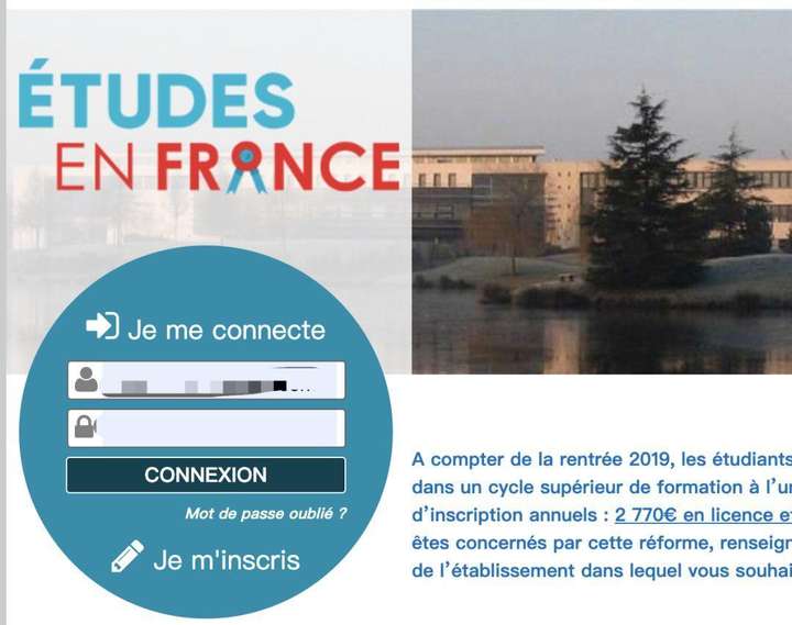 1. 在Etudes en France系统中开通并填写帐号内信息并提交程序的材料。点击"je m'inscris"根据指示完成创建。如果你有账户,请直接登录。
