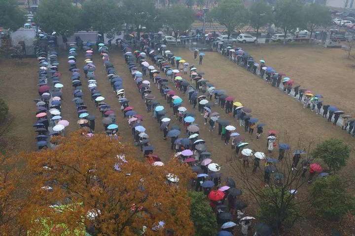 江南大学的考生在排队等候进考场(人民网,胡奕/摄)