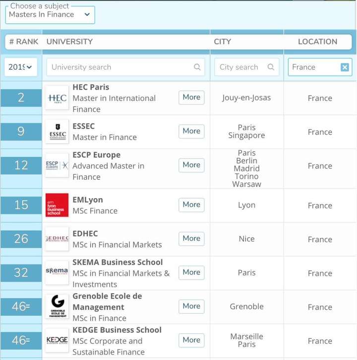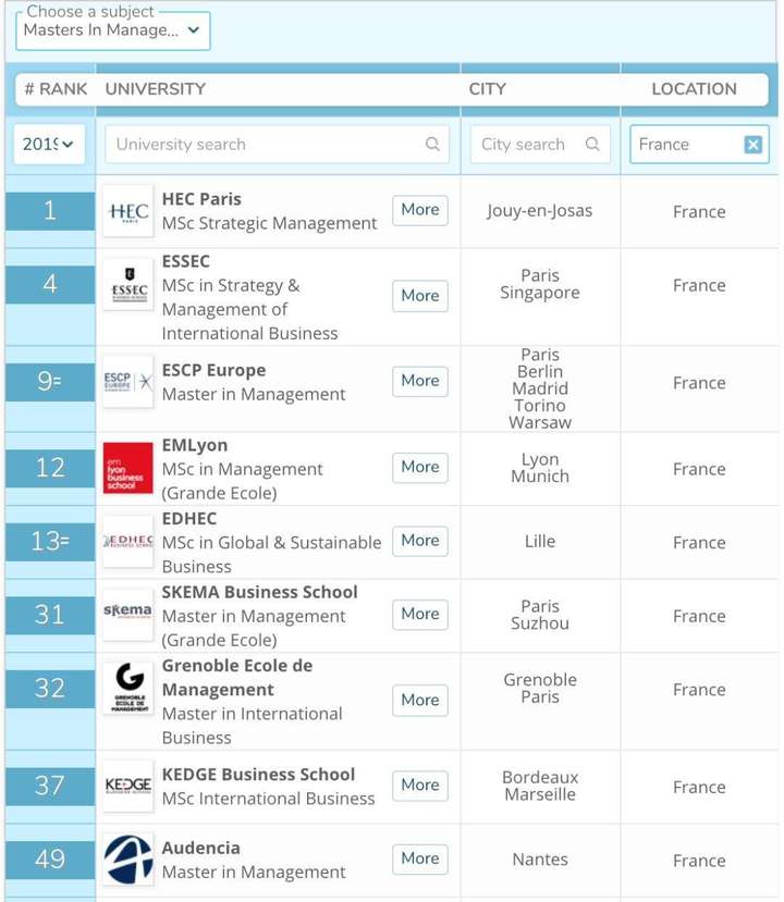 榜上有名且位居前列的HEC巴黎高等商学院是法国最负盛名的高等商学院,欧洲最著名的商学院之一。曾连续多年被评为欧洲第一商学院,多个专业在世界排名中位居第1-2位。曾培养出欧莱雅集团CEO、开云集团创始人兼CEO、施耐德CEO、安盛CEO、法国电信CEO、世界贸易组织总干事等多位世界500强企业CEO及政界精英。