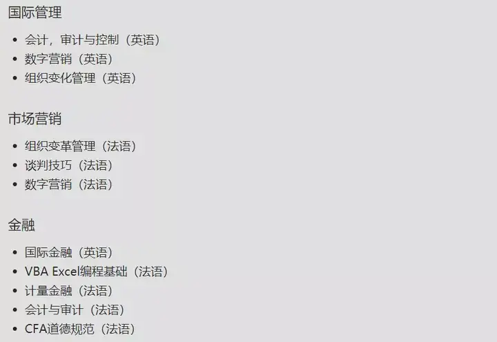 Audencia提供从本科到博士阶段全方位的课程,多个项目使用英语授课,其中热门硕士项目包括: