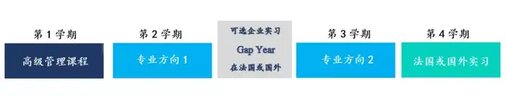 本阶段课程是为学生在感兴趣的领域里成为专家做准备,每个专业都由Audencia教授进行一学期授课,学生在第二、三学期需从以下15个专业方向中选择两个专业方向学习。