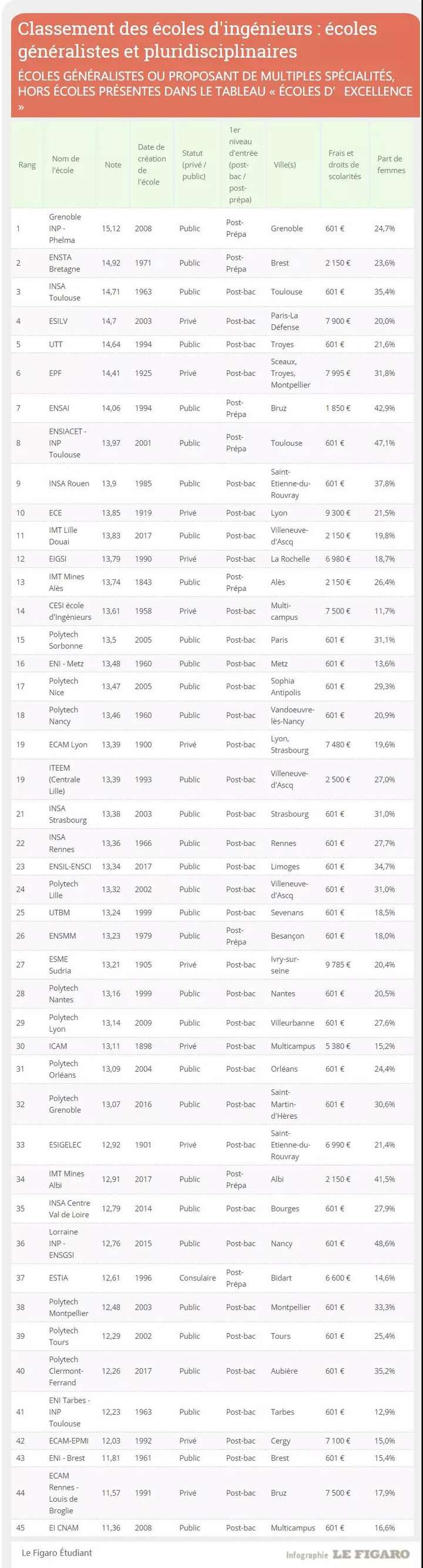Classement des écoles d'ingénieurs : écoles généralistes et pluridisciplinaires