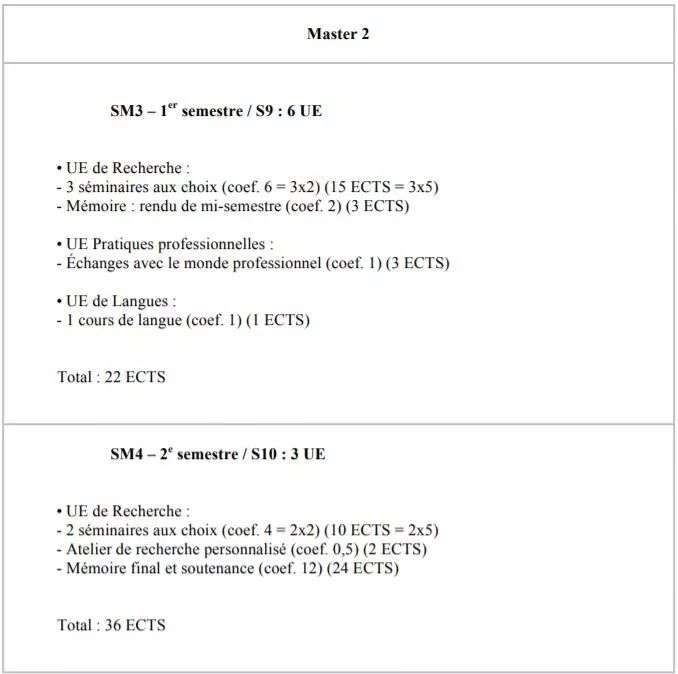 M1阶段将为学生打下一个坚实的基础。巴黎一大在M1教学的时候会涉及到专业术语、为学生提供理论(电影美学、研究方法论、创作分析、制作与传播...)和实践(电影实践方法论、剧本写作)等专业知识。而在M2阶段将分为2个研究方向,分别是:Cinéma, esthétique et création和Scénario, réalisation, production。