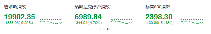 北京时间3月19日00:56,美股标普500指数盘中再次因跌至7%而熔断。这是美股10天内的第4次熔断。随后,指数一路向下,盘中道琼斯指数甚至跌破19000点到18917.46,砸出一个近日新低。截至北京时间4点收盘,美股有所反弹后,道指跌6.29%,纳指跌4.70%,标普500跌5.18%。美国总统特朗普在2017年1月20日入主白宫时,道琼斯指数报收于19827点,期间最高涨至29568.57点,而今天凌晨发生的一切,意味着“特朗普牛市”在三年后几乎回到原点。