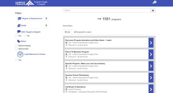 学生不仅可以用英文学习自然及社会科学,更有机会学习时装、厨艺或者戏剧表演等等非常丰富的课程。现在在法国留学的中国学生当中,有46%选择了英语授课课程。在政府的支持下,法国高校将致力于增加英语授课课程数量,以便在接收外国留学生时所有课程均可提供全英语授课。据统计,法国高商英文授课的比例高达80%,很多公立大学项目(免学费)在逐步提高英文授课比例,其中599个项目可以获得国家文凭!