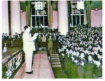 当时毛主席还教导同学们说:“青年人应具备两点,一是朝气蓬勃,二是谦虚谨慎。”在讲话中,毛主席纵论天下,旁征博引,提出了“世界上怕就怕认真二字,共产党就最讲认真”的名言。
