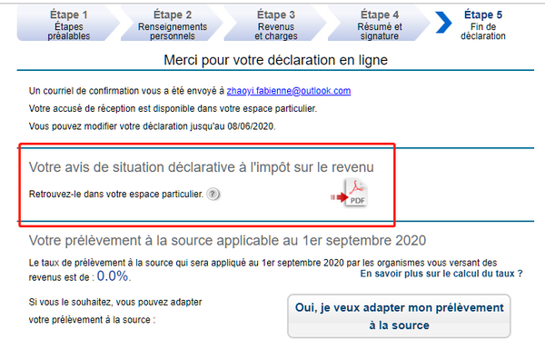 今年的收入情况有变化,那么你只需要在法国税务局网站:http://impots.gouv.fr,登陆你的个人账户(espace particulier),在线完成更改就可以了。