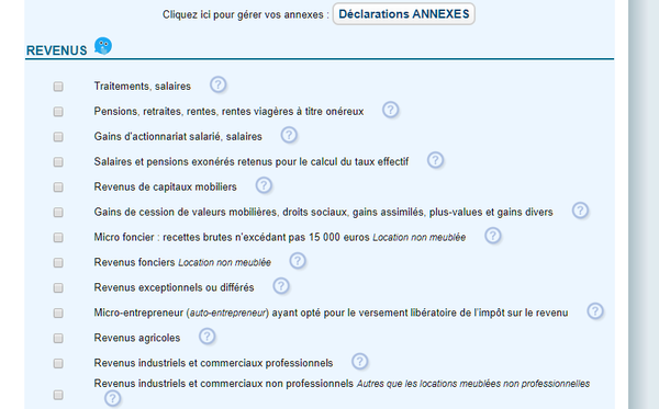 有了13位的税号,激活账户登陆之后,在个人空间的页面点击accéder à la déclaration en ligne,进入在线报税程序。然后点击commencer开始报税!流程大概如下。没有收入的留学生可以直接跳过这些选项。