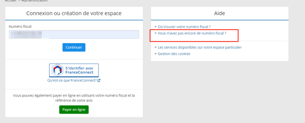 如果你是今年第一次报税,请点击右边Aide(帮助)之后点击,:vous n'avez pas encore de numéro fiscal ? (您还没有税号吗?)