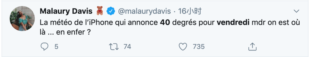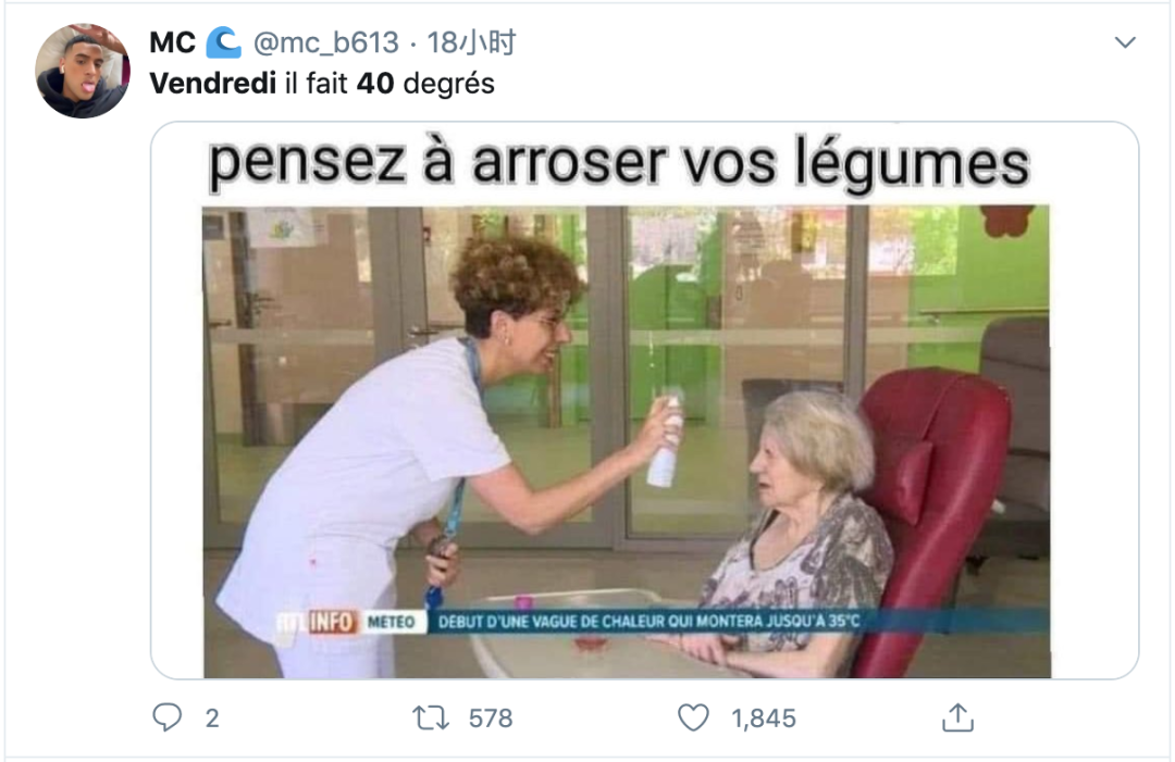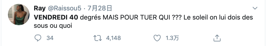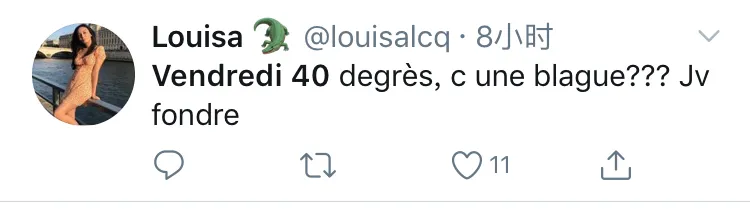 本周五波尔多35℃高温,巴黎达到37℃高温,第戎39℃,蒙特利39℃高温,里昂40℃高温。