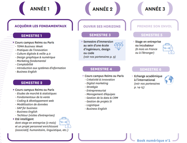 学校的三个校区(鲁昂、兰斯、巴黎)共同提供一套从学士到博士项目的教学内容。学院已获得世界顶级的三大认证:EQUIS认证,AACSB认证和AMBA认证。