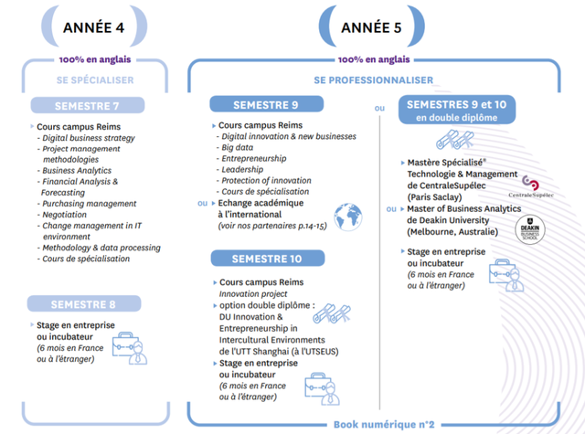 五年制大学校项目在同类项目中法国排名第二(Challenges杂志2020年排名)。本硕连读项目兼收高中与本科毕业生,同时也有可能插班进入三年级。