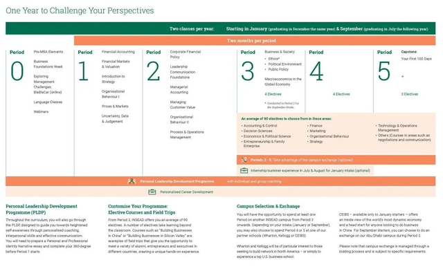 MBA项目是INSEAD的经典项目,学制仅为10个月,每年提供1月和9月两个入学时间选择,时间成本低,投资回报率高。在法国、新加坡以及阿布扎比设有独立校区,在旧金山设有商业创新中心,MBA学生均可获得在两个或多个国家学习的机会。