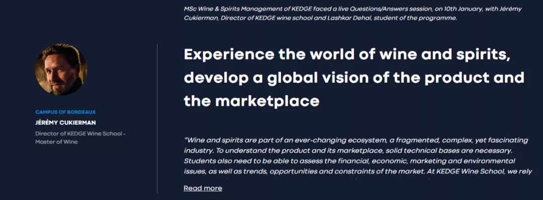 推荐课程:葡萄酒与烈酒管理硕士 MSc in Wine & Spirits Management: