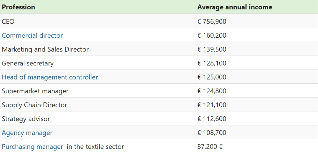 当然,职位的晋升也可以大大的提高薪资水平。经济杂志《挑战》(Challenges)对2020年高管的平均收入,即商学院毕业生可晋升的职位的平均薪资进行了调查。结果如下: