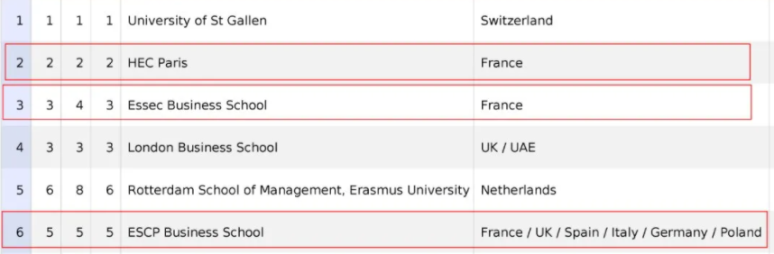 管理学硕士GE项目在各大榜单中表现也是非常亮眼的。在《金融时报》(Financial Times)发布的 2020年世界管理学硕士排行榜TOP10中,法国就占据其中3位。同时,法国是上榜院校数量最多的国家21所,远超过英国的13所。
