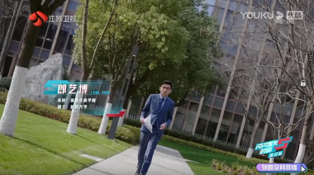 郎艺博学长是出场即炫酷,是整个片中第二位登场的学员。他的本科在埃塞克商学院就读,之后去了剑桥大学读硕士。在前期的简历综合排名中郎艺博学长位于第4名。