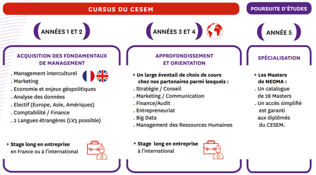 CESEM拥有3条国际轨道(欧洲,美洲,亚洲),使您可以在法国度过两年,而在国外度过整个两年,从而获得两个学位,一个是法国,另一个是国际BBA类学位!