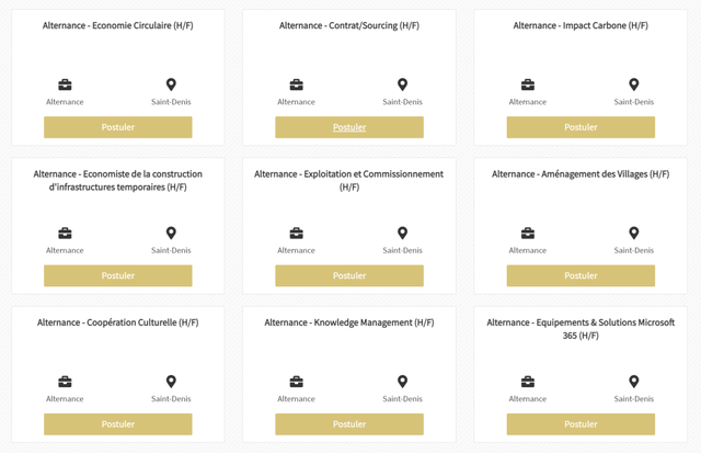 目前,在巴黎奥组委的官网网站上公布了43个学徒制岗位。工作地点在巴黎93省的Saint Denis。