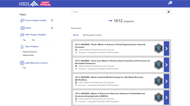 近年来有越来越多的法国高校开设了英语授课的专业,法国英语授课课程的数量较2004年几乎增加了5倍,从286个增加到1612个,其中1314个为全英语的授课项目。