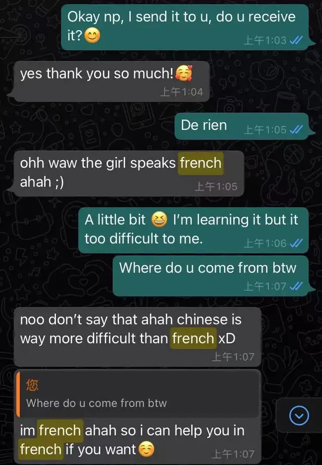 一个小伙伴单独私信我说如果听不懂法语她可以教我