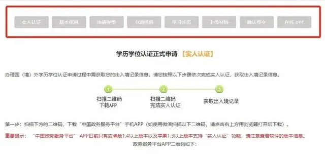 根据流程依次完成实名(人)认证、基本信息、申请类型、申请信息、学历经历、上传资料(pdf格式,彩色扫描件,小于5M)、确认提交、在线支付等步骤。(每件学历学位认证验证服务费为360元人民币。)