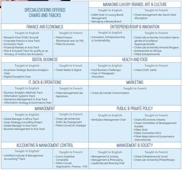 ESSEC Grande Ecole 课程是世界上历史最悠久、最负盛名的管理硕士课程之一。其目标是培育下一代负责任的国际商业领袖。