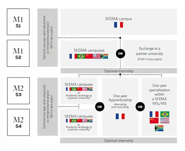 而在M1和M2之间,学生可以选择进入公司工作、实习、交换一年,来为后续的学习获得更多的实践经验。