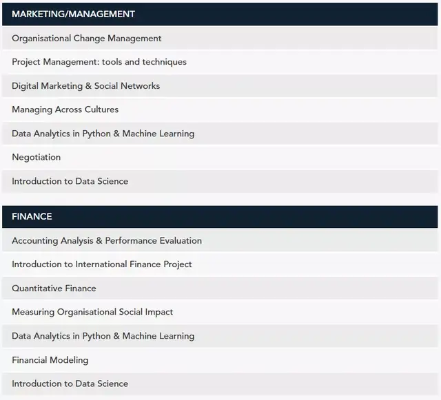 SKEMA商学院管理学硕士,授课内容涵盖了企业管理、金融、市场、商务环境、战略等多种商务领域。