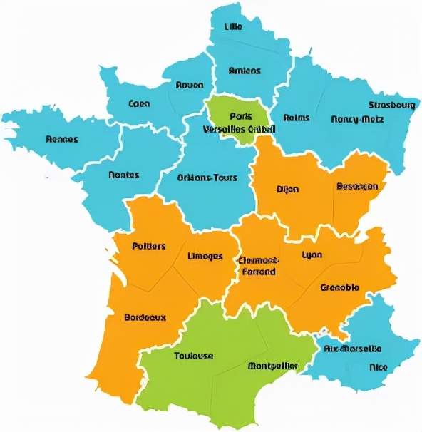 法国本土一般分为三个学术区域,科西嘉岛除外。